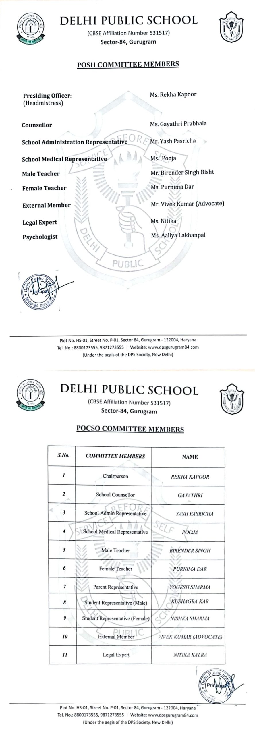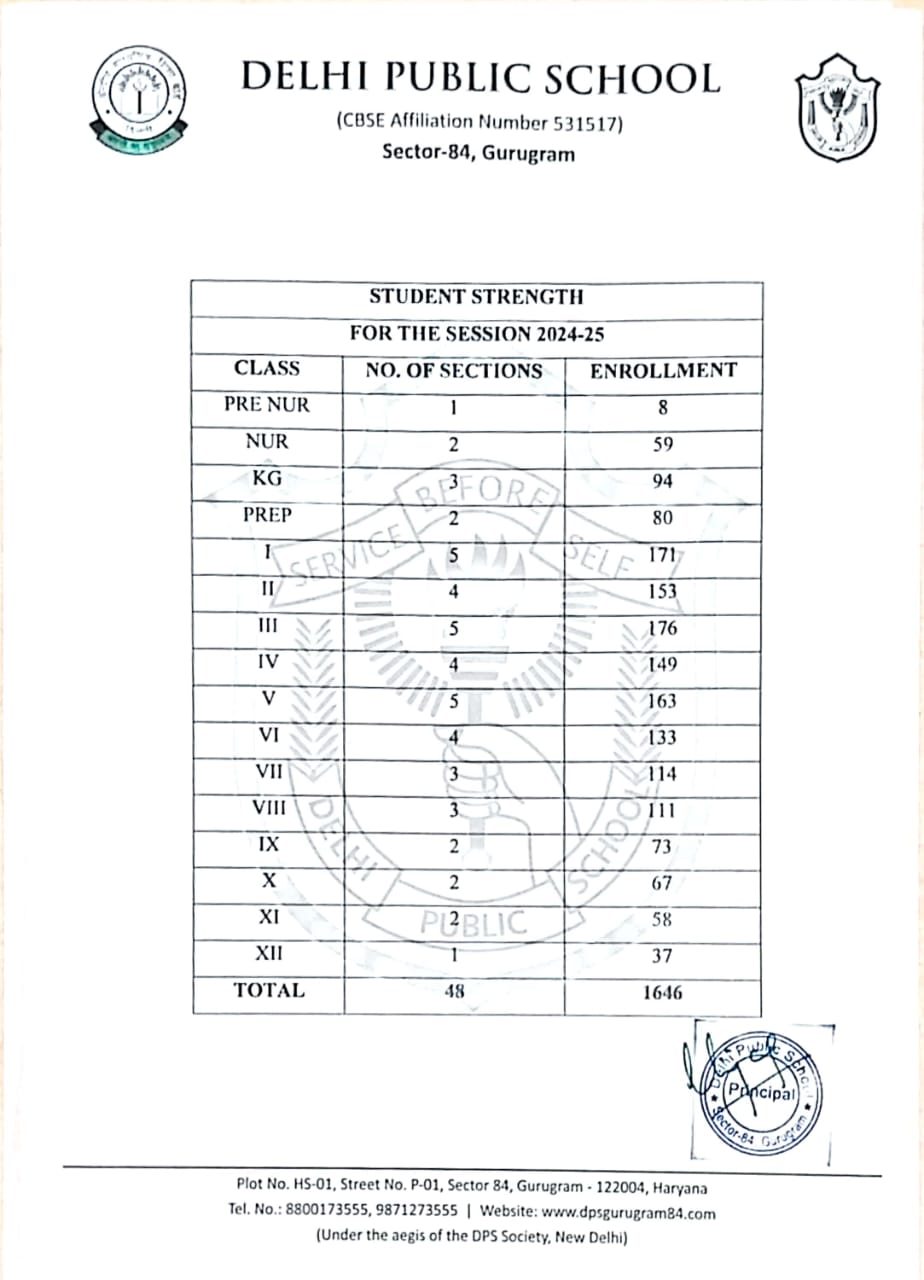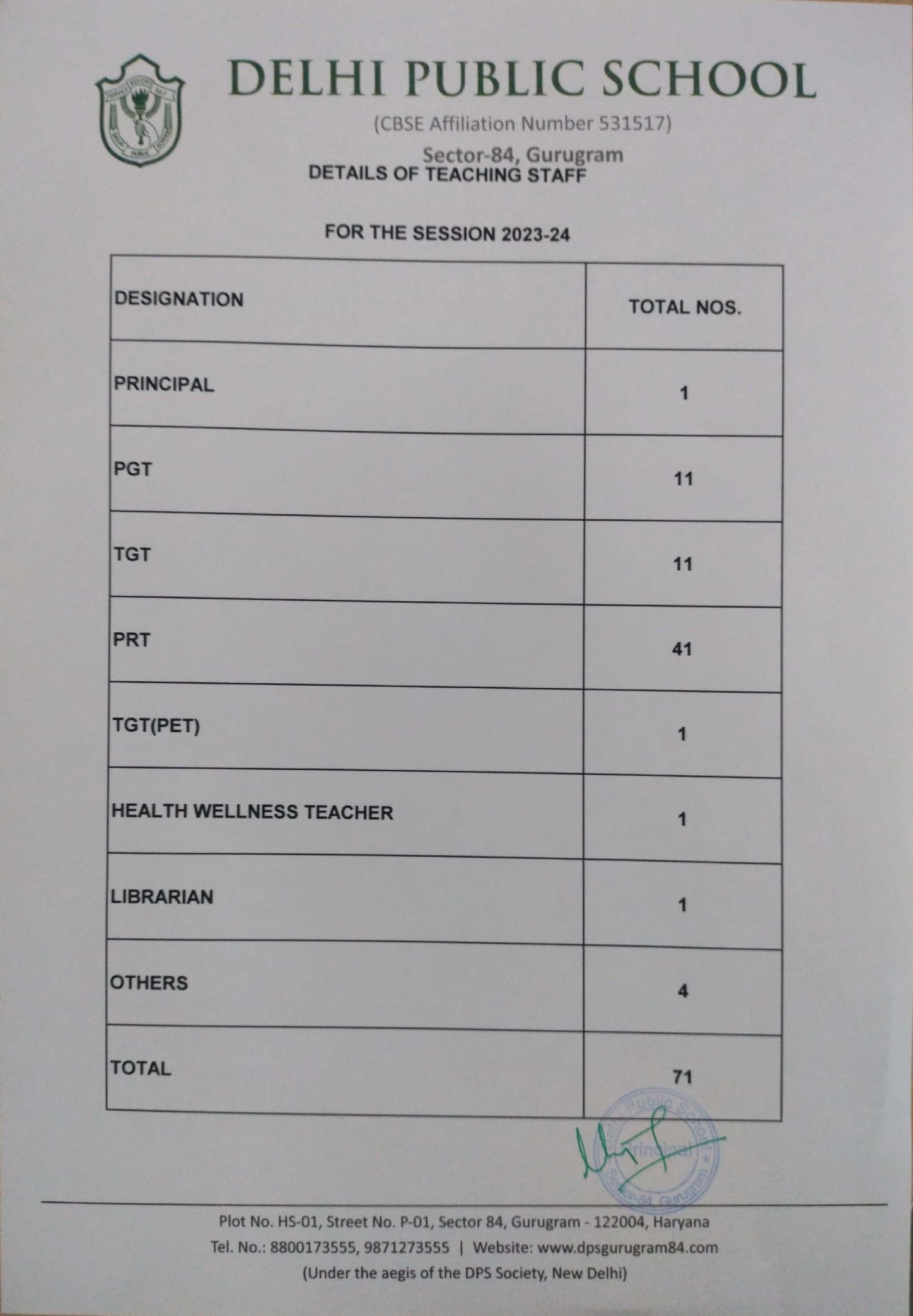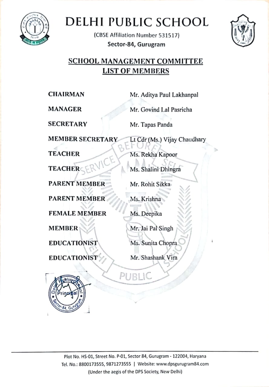 Compliance information and essential details regarding Delhi Public School, Sector 84, Gurugram.